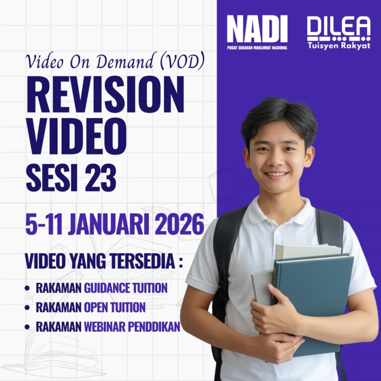 PENDAFTARAN VIDEO ON DEMAND – REVISION VIDEO SESI 23 KINI DIBUKA! Video on Demand – Revision Video khas untuk anda ! Tarikh : 5-11 Januari 2026 Waktu: Fleksibel – ikut jadual anda sendiri! Akses rakaman kelas dan boleh ulang tayang […]