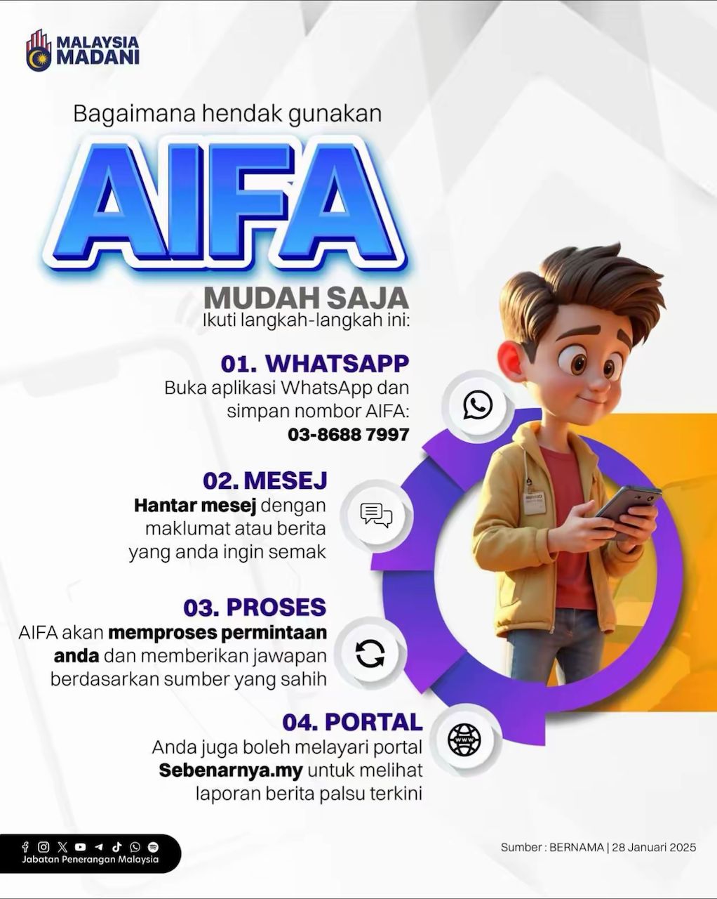 Suruhanjaya Komunikasi dan Multimedia Malaysia (MCMC) terus memperkaya sumber rujukan Chatbot Artificial Intelligence Fact-check Assistant (AIFA) dengan data dan sumber baharu bagi memastikan ketepatan jawapan diberikan kepada pengguna. MCMC menerusi kenyataan kepada Bernama hari ini memaklumkan, pihaknya akan terus mengkaji […]